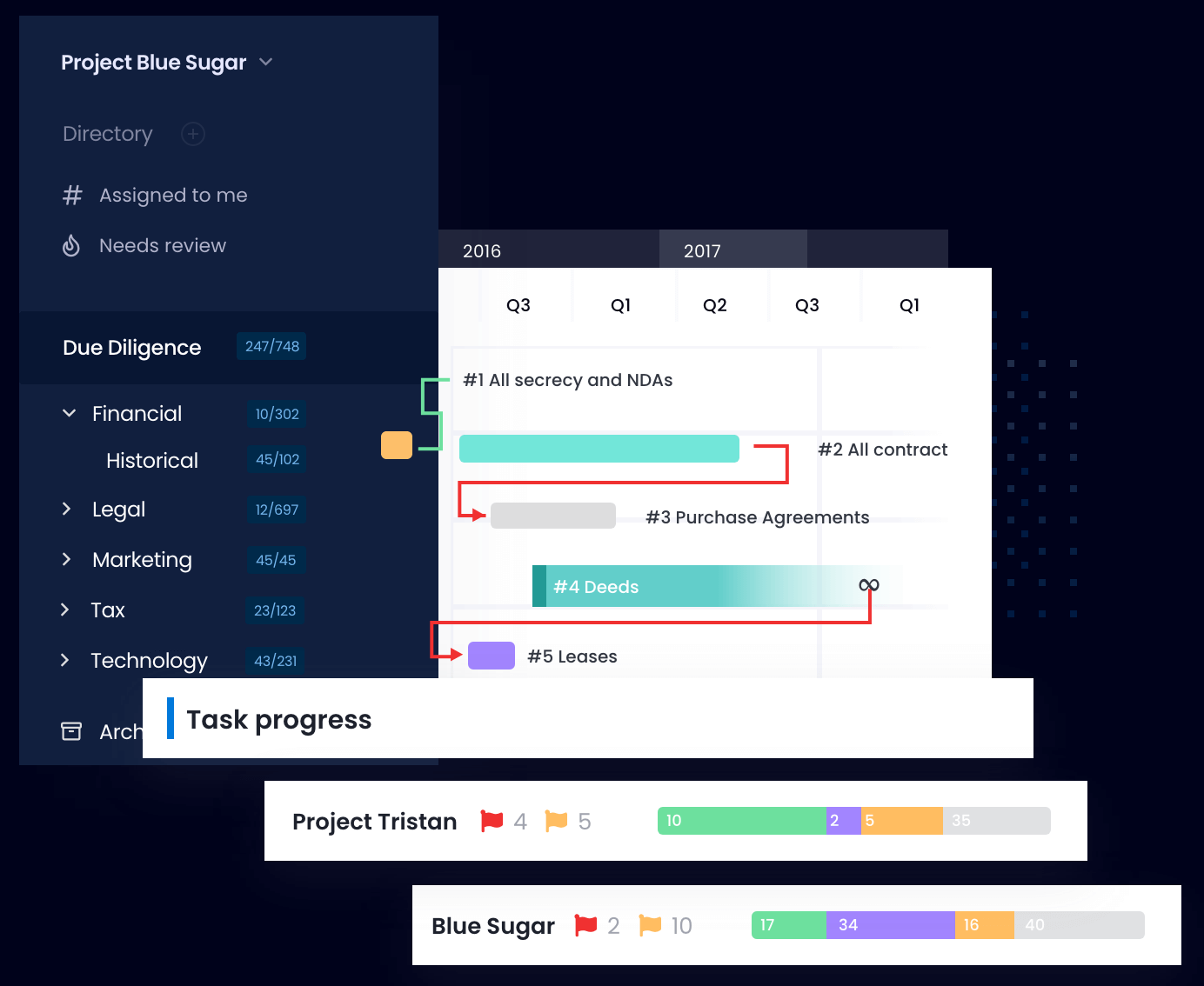 Follow important deadlines and due dates, and track dependencies.
