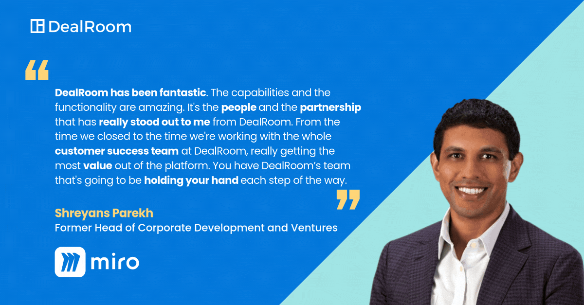 At DealRoom, we’re committed to making the adoption process as smooth as possible. From day one, we’re by your side—helping you set up, get comfortable with the platform, and make sure you’re confident leveraging it to reach your goals.