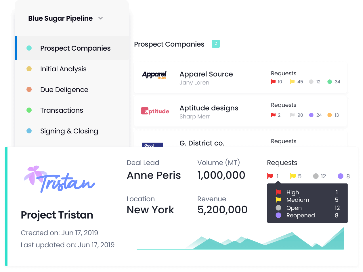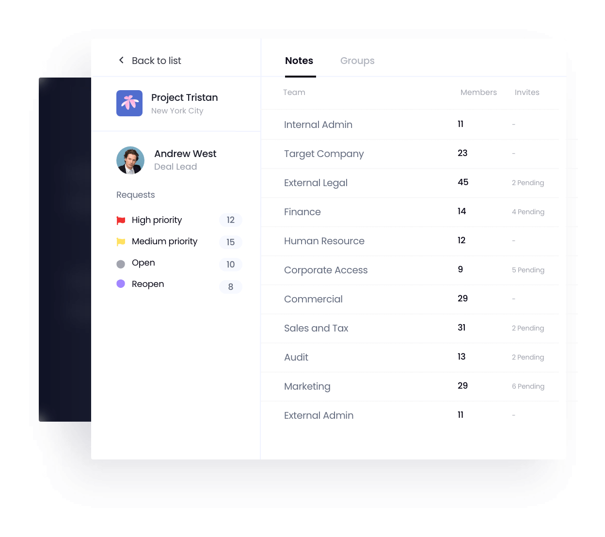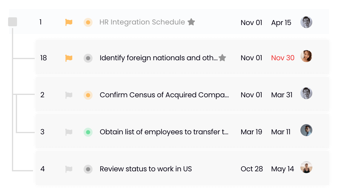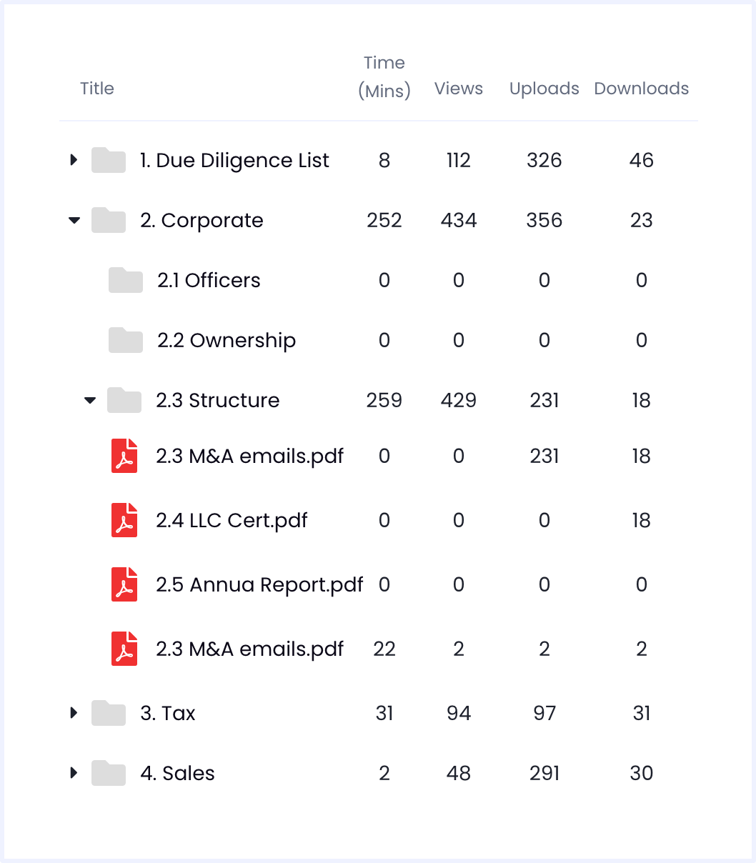 Speed up your process with DealRoom’s library of pre-made templates that ranges from due diligence, form of LOI, flows of funds, to integration and more.