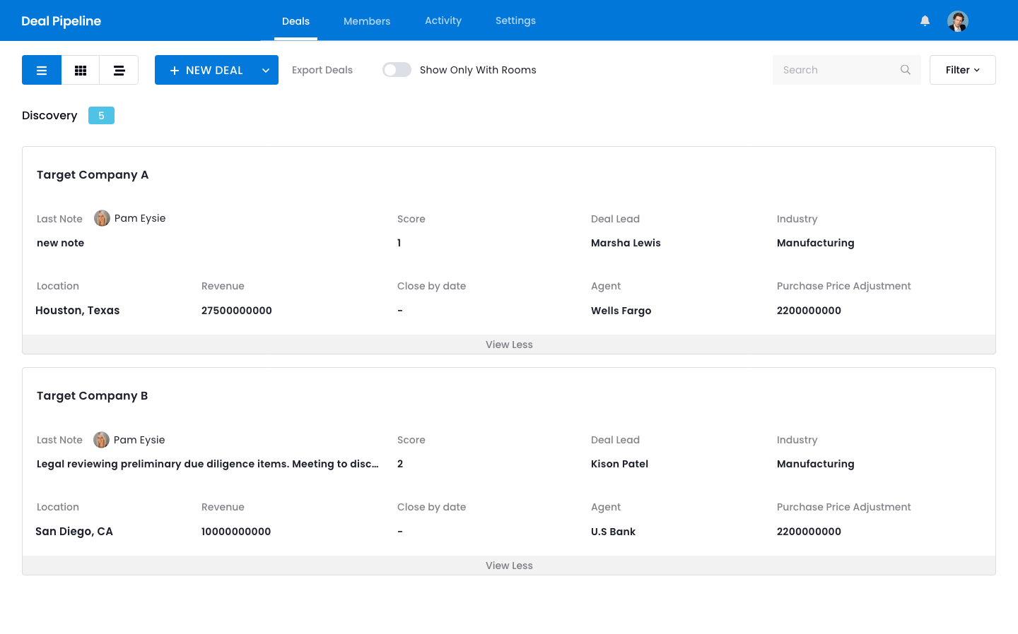 By importing your deals from Excel, you can keep all deal workflows on one platform. DealRoom auto-populates the metadata fields upon import for a quick set up and allows you to have complete control over what deal metadata is displayed.