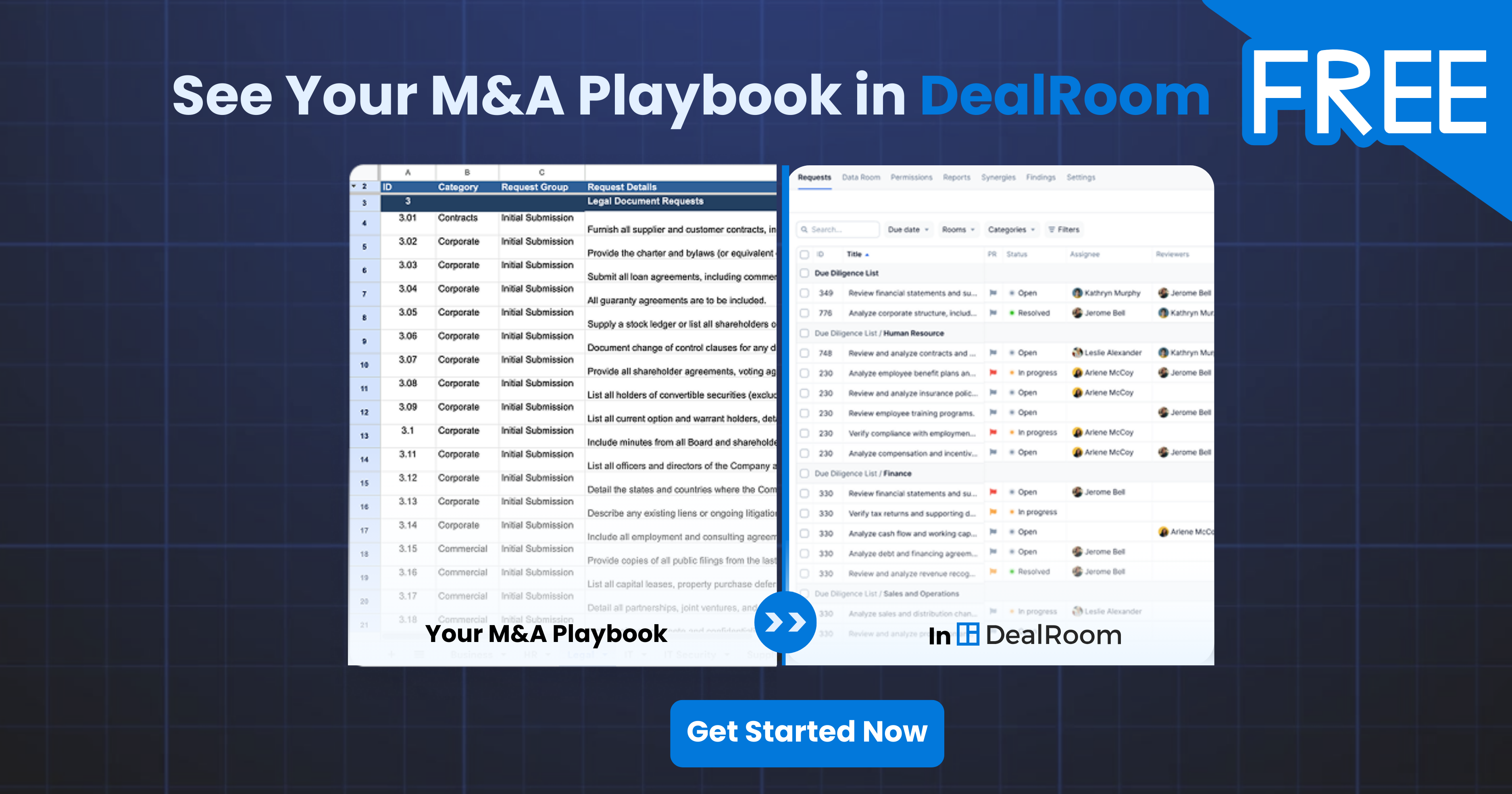 "As a PE-backed roll-up, we can’t afford inefficiencies or delays. The DealRoom M&A Platform allows us to scale our M&A process without adding complexity. The ability to automate permissions and process updates across multiple deals ensures we stay organized and in control, even when managing concurrent deals."